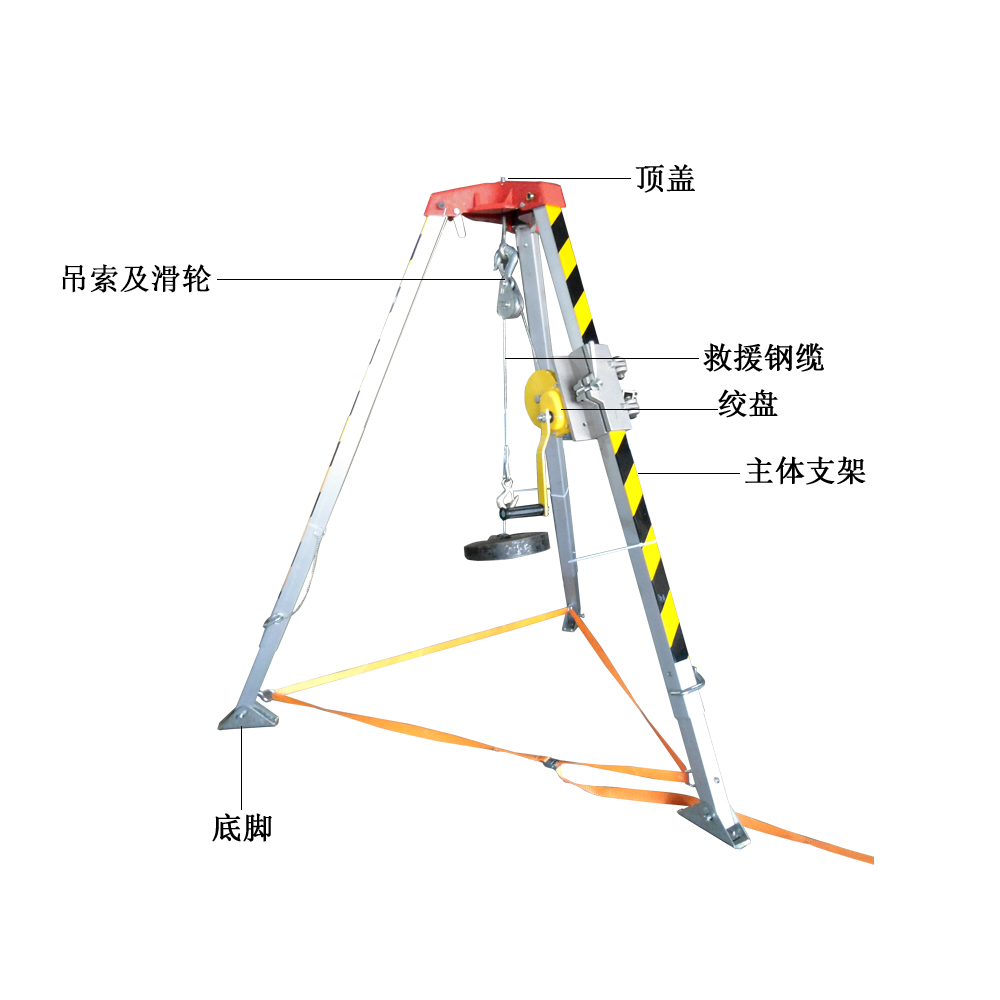 救援三腳架操作方便,體積小,重量輕,便于移動,能夠及時救援,為下一步救助節(jié)省了時間,保證了被困人員的身體健康